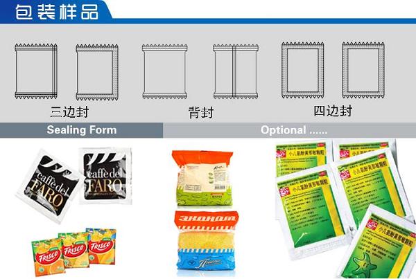 該機(jī)適用于包裝各種顆粒、粉混合物料。如:沖劑、麥片、白砂糖、味精、調(diào)味品、奶粉、豆奶粉、果仁、巧克力豆、咖啡、藥粉等物料實行全自動包裝。