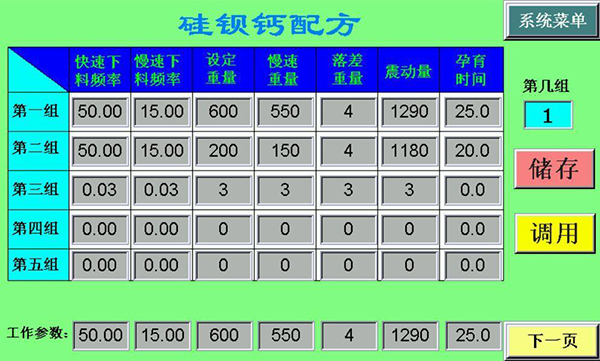 國內大多數(shù)的廠家選用的方式是控制孕育流量(單一的螺旋給料或者螺旋給料加流量計方式),基本界面如下: